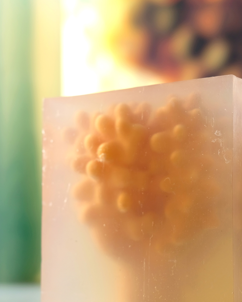 Technique & Material: 3D print PLA (bio-based plastic), soap, canvas, LED, Aluminium frame